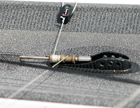 A new introduction for 2009 was what has become known as a ‘ride height adjuster’ that adjusts the ‘overall ride’, ie more or less flap on the centreboard foil, regardless of the waves. This is typically a little spindle on top of the centreboard operated by a line from either side of the boat, although there are variations on this theme.