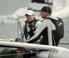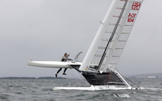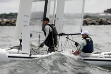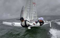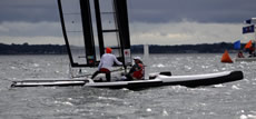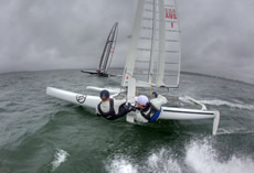 Meanwhile the competitive end of the fleet had turned into a match race between Ashby/Spithill and Eaton/Clark. The Canadians overhauled the Australians on the first leg, but then there was a full on match race for the remainder of the race, as good a demonstration as anyone could wish that these complex boats can be match raced. The race culminated in a photo finish with Ashby/Spithill a nose ahead winning by just two seconds.