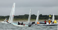 Today's race area was near Half Way Rock, north of the Pell Bridge, to minimise the left-over sea with the breeze now out of the northeast.