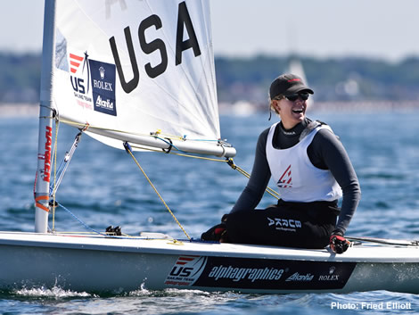 In addition she sails with the US Laser Radial squad and at the numerous training camps organised by the team and this year while in Europe has been training with France’s Sophie De Turckheim and the Danes Alberte Lindberg and Maiken Foght Schütt, as many of the US squad are still at school and couldn’t afford the time. At present coaches Luther Carpenter and Dane Dennis Paaske.
