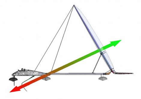 “There aren’t any other configurations that I’ve come across that have no limit. You could say that if you use symmetrical T-foils and you pull down equally and push up equally on either side [ie in a trimaran-style format, a la Blue Arrow] in theory that could go on forever. But if you look at the actual physics and maths what you find is that the total lift you are generating in the water is getting bigger in faster relationship than it is with ours. With ours the forces are in simple relation and the foil force is basically equal to the sail force.”