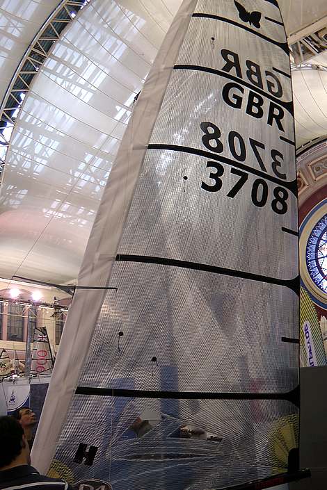 His boat also features a cute self-tacking mount for the Velocitech speedo (see the video below) and at the show was sporting the latest moulded sail from Hyde (Mike Lennon’s own) built in Dimension Polyant.
