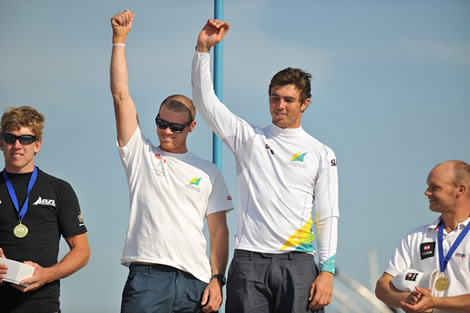 Australians Nathan Outteridge and Iain Jensen made history today by winning the Seiko 49er World Championship in Zadar, Croatia, Outteridge beating the previous three wins of Chris Nicholson and Iker Martinez/Xabi Fernandez. Outteridge first tasted success back in 2008, alongside former crew Ben Austin, and then claiming the 2009, 2011 and now the 2012, titles with Jensen.