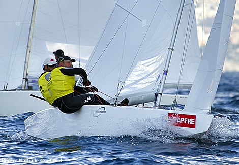 Kiwi America’s Cup and big boat tactician Hamish Pepper is back for his fourth Olympic Games, his second in the Star after a 9th place finish in Beijing. But this time around he has a new crew. Following Finn medallist and top America’s Cup grinder, Craig Monk, being lured away last summer to Artemis Racing and the AC, so the familiar figure of Jim Turner will be taking on the ‘wet assed’ role with him at London 2012.