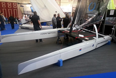 However in 2010 Field moved across to sail another Dutch-built boat called the Vision and this was on display on the A-Class stand at the RYA Dinghy Show weekend before last. Field has helped in the development of the Vision. The boat went into production at the beginning of last year, built by Catamaran Parts (who are also behind the Raptor F16) to a design by A-Class legend and mast designer/builder Piet Saarberg, whose family runs Catamaran Parts. Around 10 Visions have been launched to date.