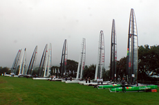 Back into Carrick Roads, the fog of course immediately cleared and there was good wind. The teams took the opportunity to vent their frustration with some fast laps. Particularly impressive was the pace of the Swiss Hydros Lombard Odier cats and their foiling ability. Most people expect this week to pan out as a fight between them and Groupama, all three boats representing the latest generation of foiling C-Class.