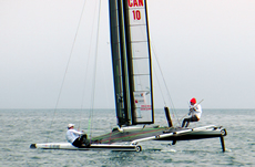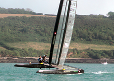 Sadly Team Cascais did go sailing in the morning only for her main beam to break causing the boat to fold up "like a taco" (which Lars Gluck tells us is the official US terminology). Through fast reactions her crew managed to save their boat’s wing, but the main crossbeam is broken and there is damage to one of the hulls. Sadly their campaign is over for this regatta, but the team including sailors Diogo Cayolla and Nuno Barreto and team manager Antonio Reis intend to stay on in Falmouth to learn what they can from this regatta.