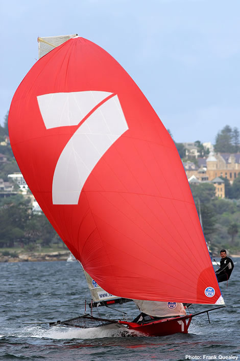 Another connection is Iain Murray, former CEO of America’s Cup Race Management for the 34th America’s Cup, recently appointed CEO of Team Australia, who for many years has been ‘Team Principal’ of the 7 18ft skiff team. In fact the 7 18ft skiff sponsorship is probably the longest in the history of our sport. The Aussie Network 7 television station backed Murray when he won six back-to-back JJs aboard Color 7 over 1977-1982 and is enjoying no less success with Jarvin as skipper today.