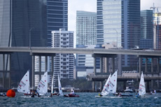 Paige Railey (USA) successfully defended her ISAF Sailing World Cup Miami title from last year with another top performance this week. Railey was the most consistent sailor from start to finish with a fleet series scoring line of 2-1-2-(12)-2-4. She had an 11 point lead over 2012 Olympic silver medalist Marit Bouwmeester (NED) heading into Saturday.
