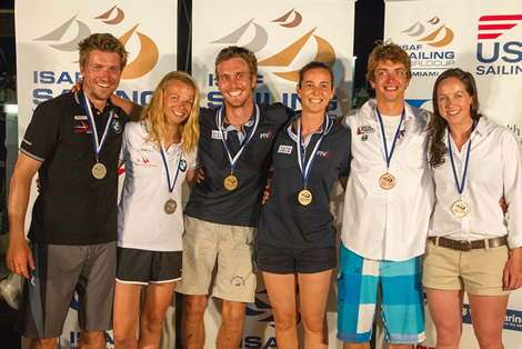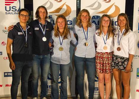 They won six of seven races this week to win by a 12 point margin over former 470 World Championship silver medalists Camille Lecointre and Hélène Defrance (FRA). Lecointre and Defrance placed third today to earn silver. Lara Vadlau and Jolanta Ogar (AUT) took the bronze.