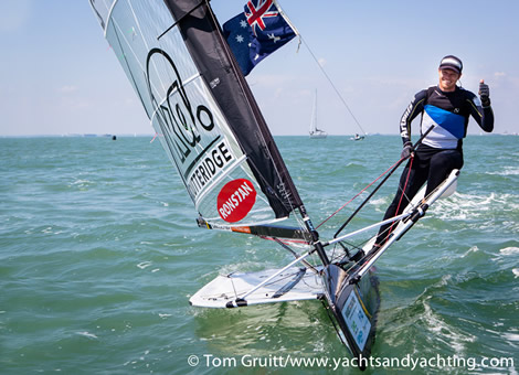 Outteridge said about the final race, "It had got a bit soft in that very last race and I actually fell off the foils at the top mark. Josh Mcknight and Chris Rashley gybed in a really good puff, and I managed to gybe, get foiling again and did about 15 gybes down in this one little puff, turned around half-way to see how I was going and no-one was foiling so it was a pretty nice way to finish, to have a really big lead."