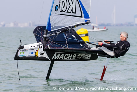 Nathan Outteridge in his prize giving speech said: "It's amazing how much can change in a couple of weeks. Mike (Lennon) showed us all how to do it during the Nationals and things changed a bit. Firstly I'd like to thank the sailing club, they've put on a great event, obviously in really trying conditions. It was good to see we got out there early and got some good racing in today. Really impressed with how the Brits have performed. Chris Rashley's done a great job, he set the bar and I've been chasing him all week so well done to Chris, well done to Josh (Mcknight) for his podium as well. Thanks to everyone who has organised the event, the sponsors, it's been a massive event to try and pull together and there's been a huge turnout. I think the class is really strong, so really happy to be here and be involved. Big thanks to A-Mac and Simon from Mach 2, Simon did a great job putting me back on the water on the first day, I think he's been keeping everyone's boats intact, regardless of what type of boat it is. You helped me in Hawaii and helped me when I bent my push-rod in the first race - it was nice not to have to carry those 70 points... Really looking forward to Sorrento next year, hopefully as many of you as possible can come down and do it."
