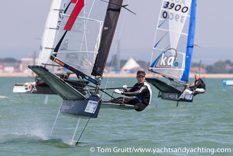 Tim Hancock, the event's Principal Race Officer said, "The final day was a glamorous day, we had up to 16 knots of breeze, we had 3 really good races, the last one was a bit softer but still foiling all the way round pretty much, so I'm delighted with the last day. The club puts a lot of effort into this, 130 volunteers so it's a huge effort from everybody. The UK class bid for this event over 4 years ago, so for it all to culminate in a warm, sunny week, ok challenging wind at times, but to come together in the great finish of the last couple of days, I'm delighted for everybody."