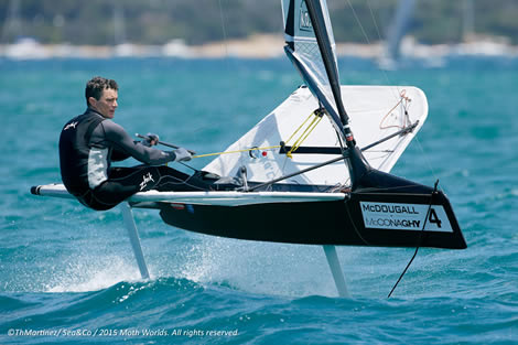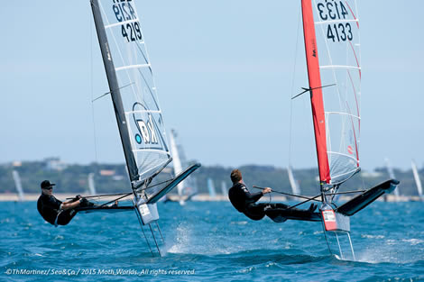 New Zealand’s Peter Burling reeled off four straight wins to take the lead on day two of the McDougall + McConaghy 2015 International Moth World Championship on Port Phillip in Sorrento, Victoria, sounding the warning bell for the other 159 competitors.