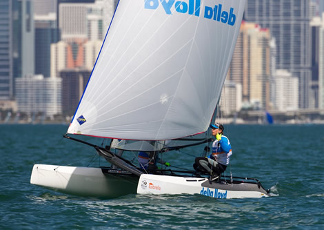 Dan Fitzgibbon and Liesl Tesch (AUS) made it two ISAF Sailing World Cup SKUD18 victories in a row in Miami. The pair won the Melbourne edition in December and facing new foes, they claimed another scalp. Alexandra Rickham and Niki Birrell (GBR) take silver while bronze goes to Marco Gualandris and Marta Zanetti (ITA).