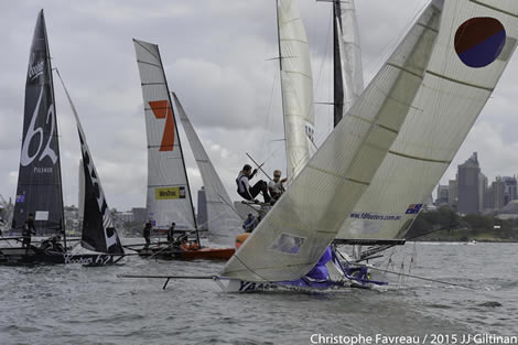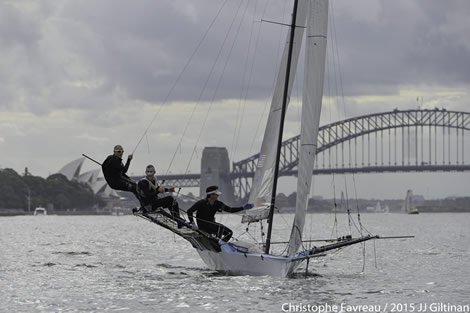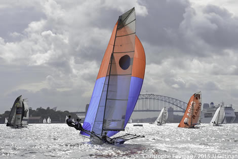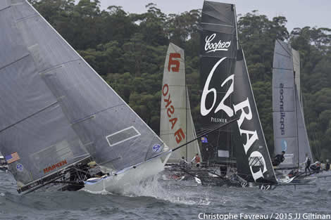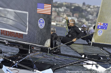 US 18ft Skiff champion Howie Hamlin turned the memory clock back 12 years when he skippered Harken to victory in Race 6 of the 2015 JJ Giltinan 18ft Skiff Championship today.