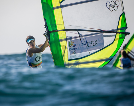 Star performer of the day was Peina Chen (CHN), who won the last three races of the qualifying series. In contrast to the Men's RS:X leaderboard, just five points separate the top six sailors going into Sunday's medal race this Sunday. Currently Flavia Tartaglini (ITA) and Stefania Elfutina's (RUS) are tied for the lead, but breathing down their necks are reigning Olympic Champion Marina Alabau (ESP), Peina Chen (CHN), Charline Picon (FRA) and Maayan Davidovich (ISR), the Chinese sailor putting in a formidable late charge winning all three of today's races. A few points further back, but still with an outside shot at the podium is Lillian de Geus (NED). Bearing in mind the final race is worth double points, at present the top nine sailors, including Britain's Bryony Shaw are within 20 points of the leaders.