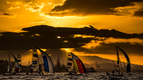 There is no stand-out favourite for gold in the brand new women's skiff fleet, and after day one of competition things aren't much clearer with two of the three scheduled races sailed. Of all the teams that might have been expected to be topping the leaderboard, few would have picked the Canadians. Yet Erin Rafuse and Dannie Boyd scored a 5,4 to hold a one-point lead over one of the acknowledged favourites, local sailors Martine Grael and Kahena Kunze (BRA), who won the second race of the day just as the sun was setting over their home town.