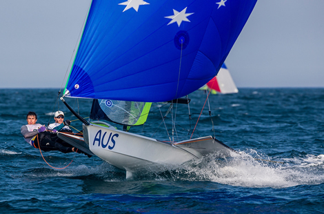 Team GBR's Dylan Fletcher and Alain Sign moved within striking distance of the medals after enjoying their best day. They now sit in the top 10 for the first time in their regatta, moving from 13th overall to eighth, thanks to 5-6-9 scores today.