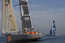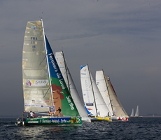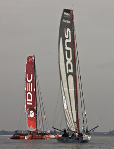 The IMOCA Open 60 was represented by just two boats – Marc Thiercelin/Christopher Pratt’s Finot-Conq designed Generali/Hugo Boss sistership DCNS and Marc Guillemot’s Safran (another La Trinite resident).