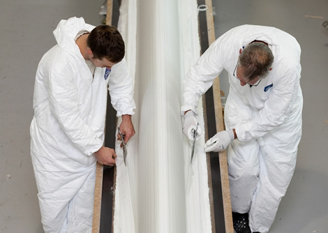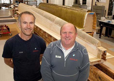 The build facility in Warksworth is being run by Tim Smyth and Mark Turner (no relation) who have been responsible for BMW Oracle Racing’s previous Cup boats, including their AC33 winning 90ft trimaran. The BMW Oracle Racing build facility in Anacortes, near Seattle, is close to the Boeing headquarters and their techniques have benefitted from input from the giant airplane builder.