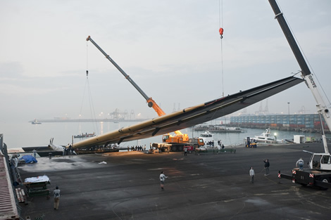 Among the manpower addressing this is BMW Oracle Racing and International 14 designer Paul Beiker and British ex-Team Philips crewman, Graham Goff. “He is a registered crane driver and a sailmaker - a good guy for this job,” says Murray of Goff. “He has been down in New Zealand for months trying to sort this out. Not only have we got to figure it out, but it has got to be integrated into the construction of the AC45s, so that there are attachment points, lifting points, solid parts where we can put them down, etc. It is not a case of build the wing and now what are we going to do?