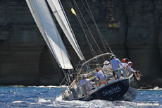 Hugo Stenbeck’s Dubois 90 Genuine Risk took the first race of the day to draw level in class with Peter Cunningham’s Titan Powerplay. The breeze built for the second race and all eyes were on the two maxis, as they swapped tacks, perilously close to the rugged shoreline. However, Richard Matthews’ Humphries 54 Oystercatcher XXVIII chose to stay offshore and the tactics seemed to pay off. After sailing a perfect beat, they worked the gybes well on the downwind leg hitting 20 knots of boat speed to snatch victory from Titan Powerplay by just 13 seconds on corrected time. "It was just champagne sailing today and a special one for me as it was the first race win in my new boat," said Matthews. "Everything really came together today and I am delighted for all of the crew who performed so well.”