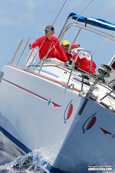 Antiguan Geoffrey Pidduck’s Six Meter Biwi Magic took full advantage of the long beat at the start to post its second bullet of the regatta but only by a whisker. Peter Bainbridge’s J/122 SkyHunter II pulled away on the downwind leg but after corrected time, missed out to Biwi Magic by just 10 seconds. Peter Lewis’ and his Bajan team on J/105 Whistler where third.
