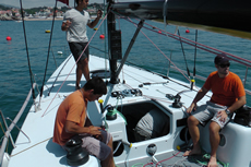 After her glass fibre construction and winglets, next most significant feature of the Soto 40 is its lack of coffee grinder, a conscious decision by the class to keep the price down, says Nacho Postigo, although perhaps not first choice for the Audi MedCup. However it is a one design, the same for all and certainly gybing and hoists provide the crew with a thorough work-out.