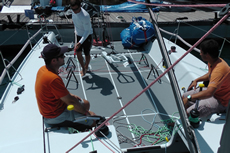 According to Nacho Postigo there is nothing that needs doing to the boat when it arrives from the yard other than fitting rope bags. There is no need to fair the appendages as the keel is milled from steel while the bulb is also milled. “Anything you touch is going to make it worse! The rudder is made in a female mould. All the boats when you template them they are very accurate. So you step the rig and go sailing...”