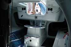 During construction the boat is weighed three times with the aim of it finally coming in at 4,290kg. Should the boat not come out at that then corrector weights are added, although rather than these being put in the bilge they are fitted through holes in the bulkhead – at the same height at the centre of gravity of the hull and deck.