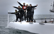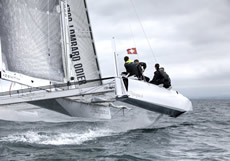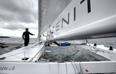 Following from L'Hydroptere, Alain Thèbault's record breaking foiler trimaran, so the team has located to Switzerland where they have launched their 35ft foiler catamaran, L'Hydroptere.ch. with sponsorship support from Lombard Odier bank and watch manufacturer Zenith.