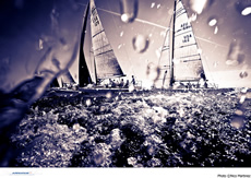 The second race of the day made all the difference for both Onorato and Douglass. Both with great starts, Onorato pulled to the front almost immediately, challenged by Edoardo Lupi's Torpyone and Branko Brcin on tactics, Mauro Mocchegiani's Rush Diletta and tactician Matteo Ivaldi, Marc de Antonio's Bribon-Movistar and tactician Hugo Rocha, Joe Woods and tactician Paul Goodison on Red and Douglass rounded the top mark respectively. Lupi was super fast downwind trumping Onorato at the left-hand gate, the two were followed closely by Douglass. Back upwind, Douglass picked up a few more positions, rounding second behind Onorato, putting down a great chase to the finish. Onorato took the win, Douglass was second, while Mocchegiani scored a nice third.