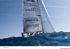 The first race of the day was delayed by almost an hour or so before boats were off the line and on their way to completing race seven in a series of ten. Vincenzo Onorato's Mascalzone Latino and tactician Francesco Bruni launched an all-out assault on the fleet, not just winning the first race with a massive lead, but took success another step further to win race two of the day as well. Onorato's remarkable day on the water has catapulted him to sixth place, up from twelfth overall.