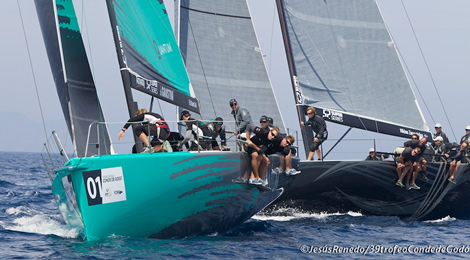 But the double Audi MedCup champions go into Sunday’s one deciding race tied on aggregate points with the Italian Audi Azzurra Sailing Team and with Rán, the boat which won the TP52’s last regatta here in September, breathing down their necks two points behind.