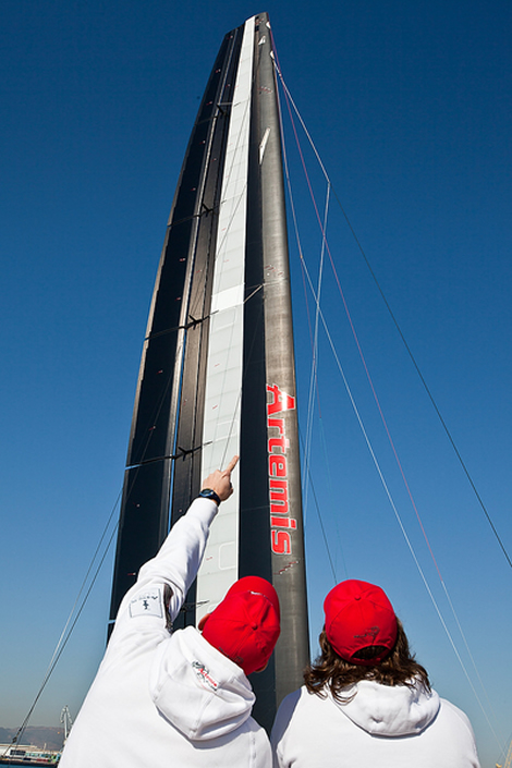 The only AC72 wing to have emerged into public view is the one Artemis Racing has fitted to their modified ORMA 60. Holroyd says that the Swedish team's wing is “a different solution to where we are at. I have a feeling that maybe their designers are looking a little more for upwind efficiency rather than raw down wind power perhaps, vis-à-vis where I think we are at.” According to Holroyd he can tell this by the ratio between the relative sizes of the front and rear flaps and where that puts your most efficient point on the lift curve. “My guess is that they may be a little more efficient than us in low lift-type conditions. We may ultimately be able to pull more power up out in high lift conditions.”