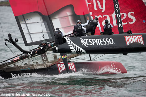 However as with all multihulls straight line speed is only one issue and a great deal of focus is certain to be on how quickly the AC72s can be made to turn corners, with more rocker so that they are less prone getting caught in irons along with other manoeuvre-aiding devices. “The Race Committee has already stated that the courses they will set will require boats to gybe at least three times down the run. A three mile run is expected to take around six minutes, so you are going to come around the top mark, buoy deploy, manoeuvre, you’ve got three dives gybes and a bottom mark rounding to keep it to complete - all in six minutes.