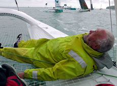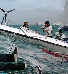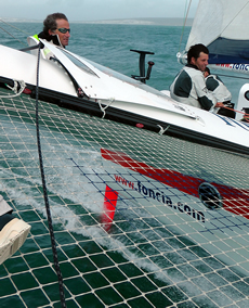 The lap of the Isle of Wight was Ian Walker’s first experience of racing large multihull. “We have had a great day. It is not every day you get to go sailing with Michel Desjoyeaux and Robin Knox-Johnston. Mich has got a great team - a young team, all keen. I am impressed with the boats, everything seems to work, they are incredibly manoeuvrable. I was amazed how quickly you could tack and gybe – everything seemed incredibly easy, but maybe that’s just because the crew is so good.”