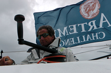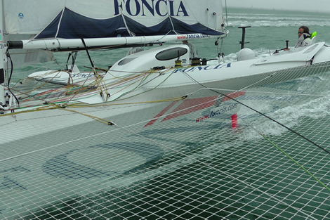 With Desjoyeaux cool as a cucumber on the helm, sat in one of the bucket seats at either side of the cockpit, Foncia was being ably handled by her young crew. With leading Figaro sailor and Banque Populaire maxi tri crewman Thierry Chabagny navigating, her French crew comprised Antoine Carraz, Julien Falxa, Alban Rossolin, Nicolas Texier and Denis Juhel.