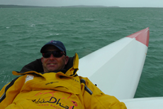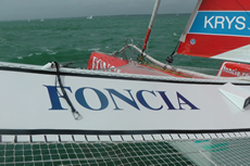 Returning to the central Solent with Ian Walker moving into the cockpit to assist on tactics, we had some fun threading our way through the Cowes Week fleet at 30 knots, some of the smaller monohulls appearing to be at a virtual standstill. With big grins throughout the crew, Foncia recrossed the Squadron line 2 hours 21 minutes and 25 seconds after departing, breaking the second by 12 minutes 30 seconds, making our average speed for the 50 mile lap 21.1 knots - not overly quick compared to the Banque Populaire maxi tri’s 32.94 knot average across the north Atlantic from New York to the Lizard but still a worthy record (still subject to ratification by the World Sailing Speed Record Council).