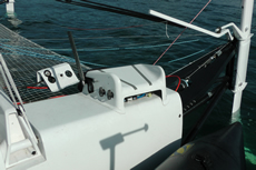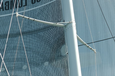 Other observations about L'Hydroptère.ch is that she has a lot of beam, compared to conventional racing catamarans. While her overall length is 10.85m, her beam is 10.48m, making her platform virtually square. The similarly-long D35 for example has a beam of 6.89m without her racks and 8.74m with. In the video below Daniel Schmäh, L'Hydroptère.ch ’s helmsman and skipper explains that this is due to requiring enough separation between her hulls to use the foils.