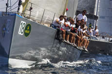 After a long wait and one race abandoned shortly after the start, the Race Committee managed to get the fleet under at 1500 local on a 13 mile coastal course. From the start the fleet headed west towards the coast and the Secca Tre Monti before heading through the strait between Capo Ferro and the Isola delle Bisce islet. The 8 knots of breeze from 330° on the starting line would later fade and force PRO Peter Craig to shorten the course for the Wally and Racing divisions to 12 miles and for the Racing/Cruising and Mini Maxi divisions to 9 miles.