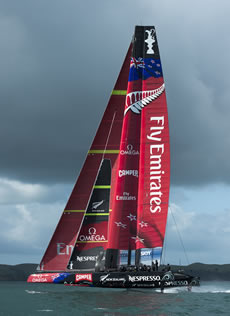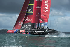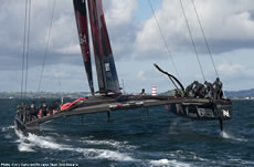 At present the AC72s we have seen foiling are only doing so off the breeze, but one imagines it is only a matter of time before they can do this upwind as well. Basically this comes down to the speeds the AC72s can achieve upwind, which one imagines will be in the 23-25 knot region and whether the size/section of the foils a team is using at this point are large enough to generate the required lift.