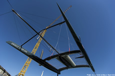 While design focus has been very much on the boards and the wingsails, little mention has been made of the hulls of the AC72. Kramers maintains that they are still extremely important representing one of the greatest sources of drag, although aerodrag on the rig is also a big deal once the boat is sailing at 40 knots. “Even the windage and the platform drag or the drag of the net – all these things take on different proportions when you start going upwind at speeds higher than 20 knots. Of all the boats I’ve been involved with these and the last two boats [USA17 and Alinghi 5] are the only ones where the VMG upwind is greater than the wind speed. I don’t think there are any other boats on the planet that will do that.”