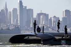 However while an airborne AC72 is one of the coolest sights presently in yachting – L’Hydroptere DCNS has been showponying around San Francisco Bay at speeds above 40 knots for the last few weeks showing how it’s done properly (without the constraints of an AC72 rule) – Kramers warns that there is a big difference between flying and flying fast. “It is not a guarantee it’ll be faster when you’re flying and there will be crossovers when flying is faster and sailing classically is faster and everyone is trying to figure out what that is.”