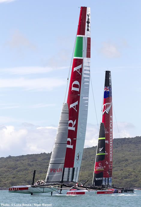 Confidence increased in August when the Emirates Team New Zealand AC72 began foiling around the Hauraki Gulf and Draper says that two months later when they first launched the Italian AC72, they were foiling on their first day out. This was only in around 11 knots of breeze and “since then it has evolved a lot,” says Draper. “The original significant boat speed increase was between foiling and not foiling. Now you are seeing significant increases between foiling really well and just foiling.”