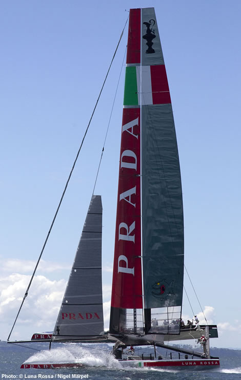 With five months of sailing behind them, the Luna Rossa team is getting proficient with their AC72 and according to Draper confidence is gaining daily. However being a one boat campaign means they can’t throw the boat around with the same gusto as Emirates Team New Zealand has been. “The Kiwis have been pretty gung-ho,” says Draper. “They have been out in a good bit of breeze and are getting very confident in it. That is something we are lacking in a bit, but we plan to work hard on that when we get to San Francisco. We have been conscious that if we break it then we wouldn’t be able to sail and it could have implications on us being able to race in the Cup, so we have been more cautious.”