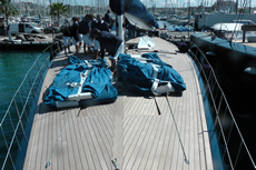 Sadly an opportunity for the two WallyCentos to compete is unlikely to occur until the Maxi Yacht Rolex Cup in September with Dunstone scaling back his race program this year due to some large scale developments in his already consuming business life. But in Porto Cervo they will be in the same waters (but annoyingly probably not the same class) as another new 100 footer, the Finot-Conq designed Maxi Dolphin built, Nomade IV. Even if there are at present no other WallyCentos in build, with Nomade IV, Mike Slade's ICAP Leopard and the two WallyCentos, there is now the beginnings of a class for 50 tonne 100ft maxi racer cruisers, with completely fitted out interiors (as opposed to the stripped out pure racing maxis like Rambler 100, Esimit Europa II or Wild Oats).