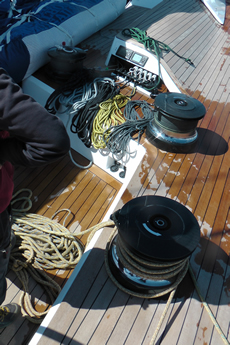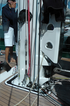 As on Hamilton there is a Cariboni Magic Trim for the backstays - the backstay is double ended with one end on the Magic Trim for the fine tune and the other coming up to a cockpit winch for the coarse tune.