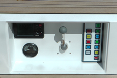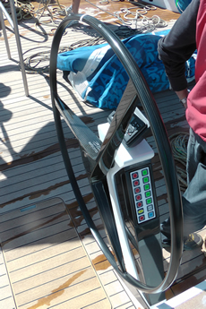 Throughout the boat, deck hardware is Harken. In the cockpit there are substantial 1125 and 1135 winches, three each side – primaries, pit and runners - and with some cross sheeting, this provides the use of up to five winches during manoeuvres. All the push button controls are positioned in the cockpit sidewall – compared to having them on the cockpit sole this is neater and prevents them being trodden on accidentally.